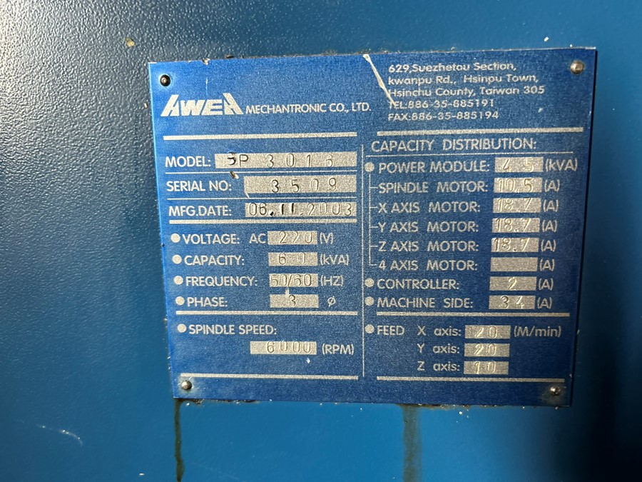 X / Y / Z Axis: 3060 / 1600 / 760 mm